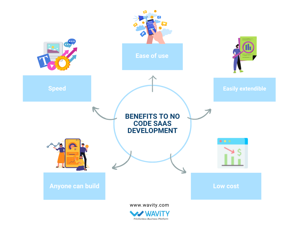 There are several benefits to no code SaaS development. During the early development stages of your platform, your team might be limited – it might even just be you. No code builders enable non-specialist personnel to get hands on and execute tasks they might have otherwise struggled with. Marketers and communications officers can handle and upload content directly, rather than passing it over to developers before seeing a final product. Codeless builders enable you to create new SaaS apps, or even replace home-grown applications for something more user-friendly.