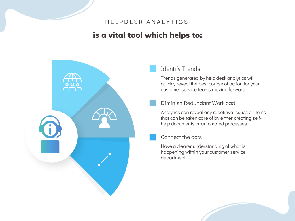 Taking the information gathered by reporting tools, help desk analytics should enable you to connect the dots, and have a clearer understanding of what is happening within your customer service department.