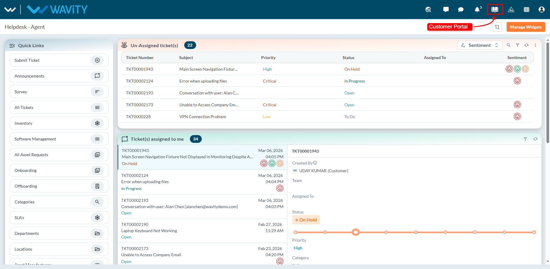 - Log in to your portal. Click the Customer Portal icon located at the top of the screen.