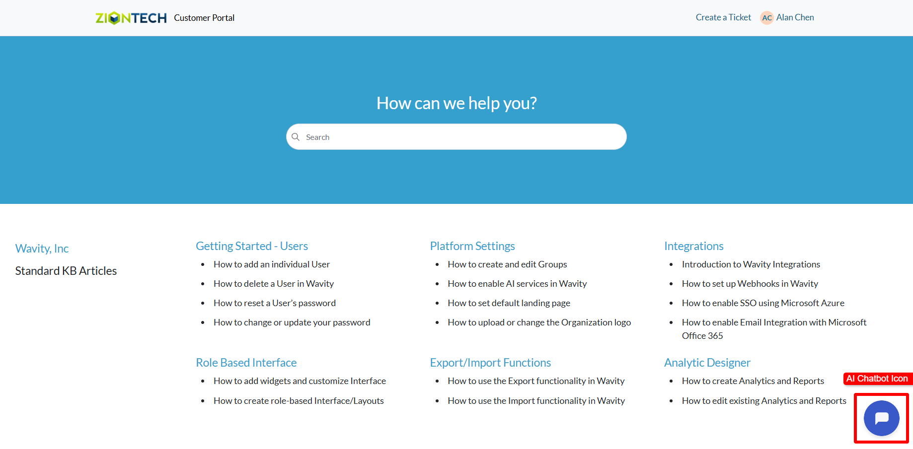 - Users can access the chatbot via the Customer Portal URL or directly through the interface.