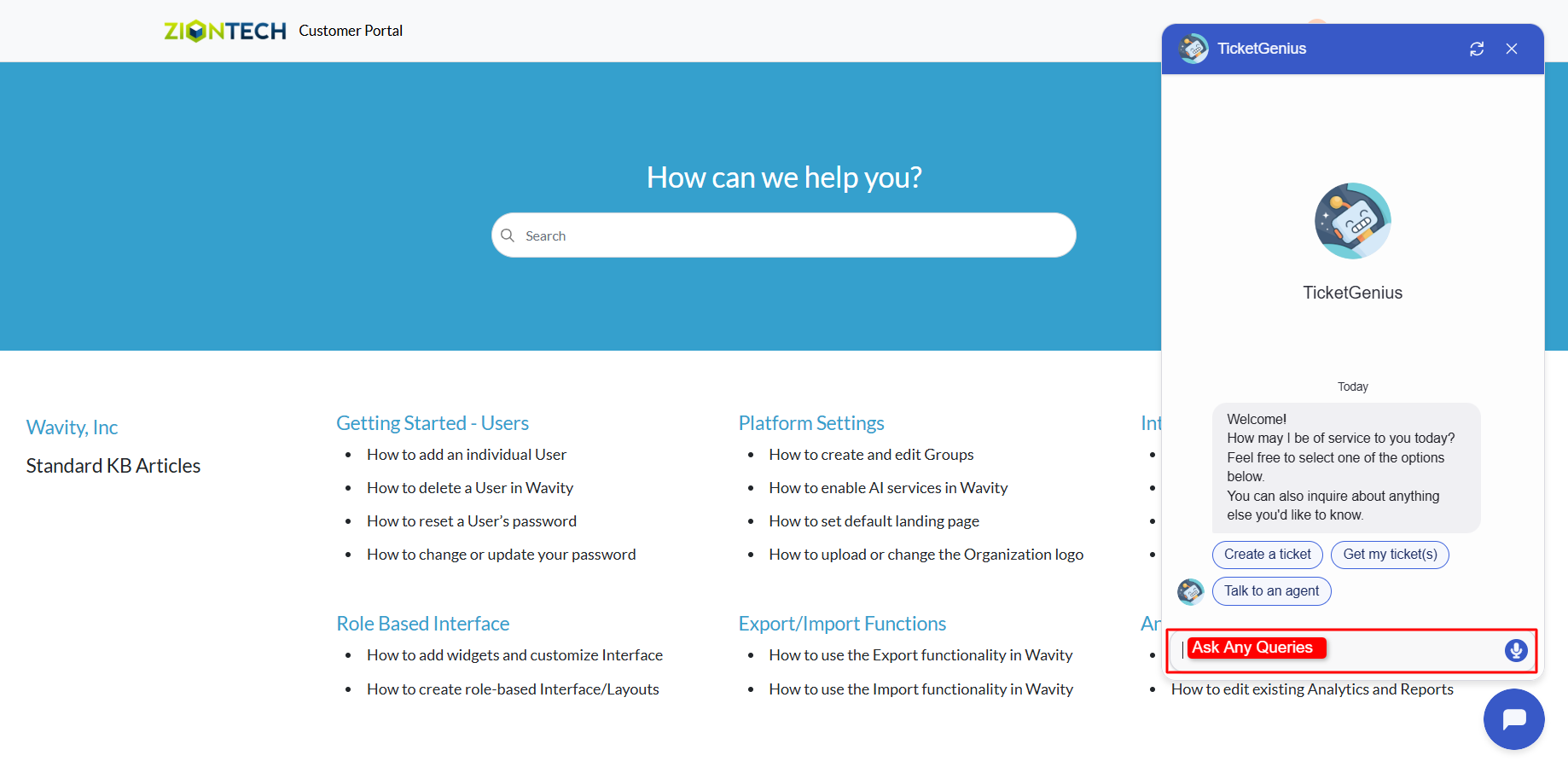 - Wavity provides an AI-powered chatbot with guided conversations offers tailored, context-aware responses to both agents and customers. By leveraging natural language processing, the chatbot can engage in meaningful interactions, help customers resolve issues, and assist agents with troubleshooting and information retrieval.